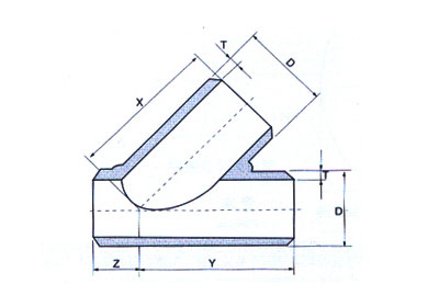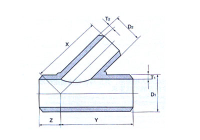 同径三通X=Y;异径三通分别按公称通径对应的X、Y选取,不同标准的对焊管件的外径和壁厚见外径壁厚表。